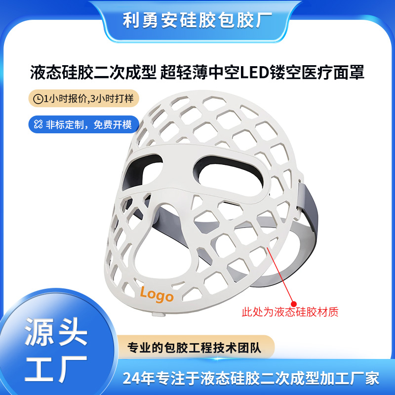 液態硅膠二次成型超輕薄中空LED鏤空醫療面罩硅膠制品定制加工